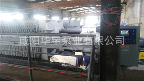 壓濾機進料的專用泵。壓濾機操作前須進行整機檢查:查看濾布有無打折或重疊現象,電源是否已正常連接。檢 查后即可進行壓緊操作,先按一下“啟動“按鈕,油泵開始工作,然后再按一下“壓緊”按 鈕,活塞推動壓緊板壓緊,當壓緊力到達調定高點壓力后,液壓系統自動跳停。